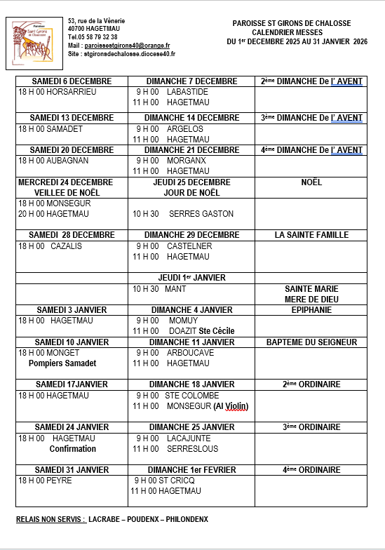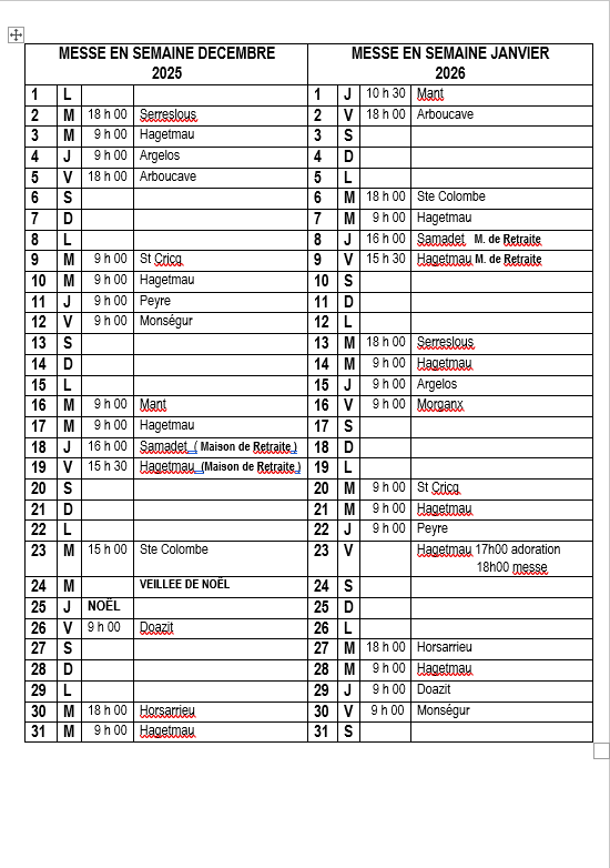 MESSE DÉCEMBRE ET JANVIER